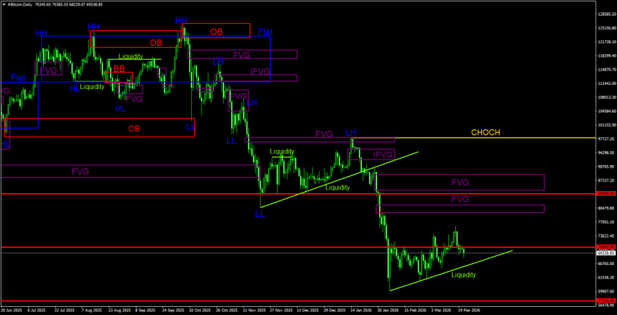 Торговые рекомендации по Биткоину(Bitcoin) на 22 марта по системе ICT.
