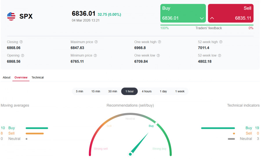 *) см. также: Торговые индикаторы InstaForex по S&P500 (SPX) Начало марта 2026 года стало серьезным испытанием для американского фондового рынка. Эскалация конфликта на Ближнем Востоке, фактическая блокировка Ормузского пролива и пересмотр ожиданий по монетарной политике ФРС создали условия для «идеального шторма», в результате которого основные индексы Уолл-стрит погрузились в «красную зону». Так, индекс широкого рынка S&P500, кратковременно превышавший исторический уровень в 7000.00 пункта в начале февраля, теперь балансирует в зоне повышенной волатильности, тестируя ключевые уровни поддержки в